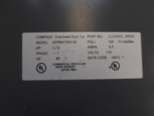 M/N: OPRMXT5011B. OVERHEAD DOOR OPERATOR. VOLTS: 115. A-1-6 FLOOR. Halls, TN 38040. ( UNLESS LISTED OTHERWISE).