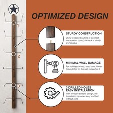 The P-ALADIN Cowboy Hat Rack is a sturdy and stylish wall-mounted hat holder designed for farmhouse decor. Made of natural wood with a stainless steel finish, this cowboy hat rack can hold up to 10 pounds of hats. The included steel and wood components make it easy to assemble, and its special features ensure durability. Perfect for keeping your hats organized and adding a touch of rustic charm to your home. Made in the United States, this cowboy hat rack is a practical and decorative addition to any living space.