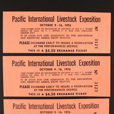 Pacific International Livestock Exposition Oregon Oct. 1976 Tickets Sequential
