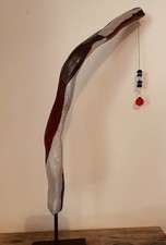 This Painted Driftwood Art Sculpture is a unique and original piece of contemporary art. The medium-sized sculpture features an abstract style and theme, making it one of a kind. Made from driftwood, the piece exudes a sense of natural beauty and artistic flair. Ideal for art enthusiasts looking to add a meaningful and visually striking piece to their collection, this sculpture is a standout piece that is sure to draw attention. This piece stands on a metal base and stands 22 inches.