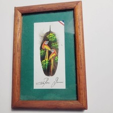 Painted Feather Framed Signed Artwork Coasta Rica feather is about 3 inches frame is a little taller them 6 inches see all pictures for details Bundle and save on shipping costs
