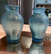 Pair of Blue Glass Bud Vases Dot Pattern Matte Finish 3 in Taiwan Bottle Shape