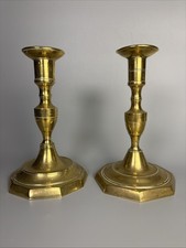 Pair Of Early 19th Century 10-Sided Brass Candlesticks