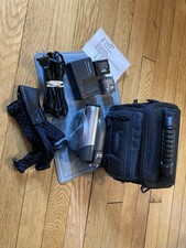 Panasonic VDR-D100 DVD video camera Comes with case, charger/AC adapter, 2 batteries, strap, and a user cheat sheet Powers on and seems to work. I am unable to test DVD function at the moment