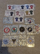 A bundle of 11 non duplicated club badge stickers and 7 Club kit stickers, all in individual sleeves and in great condition from a pet free smoke free home
