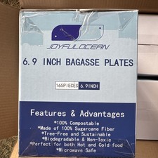 Paper Plates 6.9" 165ct Compostable Disposable Eco-Friendly Sugarcane