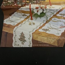 Add a touch of elegance to your dining table with this beautiful Paragon needlecraft table runner. The intricate design is perfect for any holiday or Christmas theme. Measuring 68 inches in length and 13 inches in width, this table runner is started and preowned, making it a unique addition to your collection. Crafted with the finest quality needle and bundled with all the necessary items, this table runner is perfect for any hand embroidery enthusiast. The brand Paragon is known for its exceptional quality and attention to detail. Bring home this table runner today and add a touch of warmth and festive cheer to your home decor.