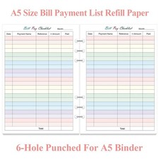 Payment Checklist Refills - 50 Sheets/100 Pages Colorful Monthly Budget Forms...