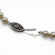 This is a preowned, graduating pearl necklace with a 14k white gold clasp. It weighs approx 12.1 grams and is 17 inches long, *pearl width: 3.5-7mm graduating