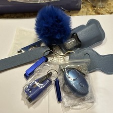 Personal Security Keychain Set with Alarm, Pom-Pom, Sanitizer, Blue