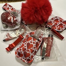 Personal Security Keychain Set with Alarm, Pom-Pom, Whistle, Heart Print