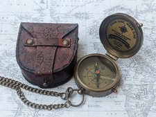 Functional magnetic brass compass. Case: Hand-stitched leather.