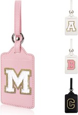 Personalized Initial Luggage Tags for Suitcases, Leather Chenille Letter Cute...