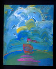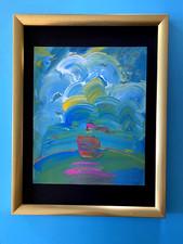 Peter Max | Ship on the Ocean Vintage Print Signed | Framed Large 16x12in. Gold!