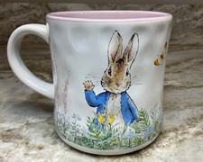 Peter Rabbit Coffee Mug Butterfly And Wildflowers Pink Inside 16 oz. New