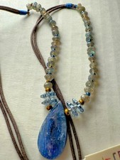 Peyote Bird Necklace 18in Artisan Genuine Stone Sterling Silver Leather Cord