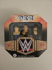 PEZ Dispensers WWE World Heavy Weight Gift Box Set 3 Dispenser The Rock The Undertaker John Cena 2016 NIB New and unopened Packaging has some wear, knicks, dents. Sticker residue on top of cardboard packaging