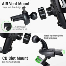 2-IN-1 DESIGN After taking things into accounts, CarKit provides the 2 most secure holders for your vehicle - CD Slot Holder & AIR Vent Holder. We want to give you the option of choosing where you prefer the car phone holder.