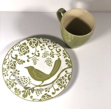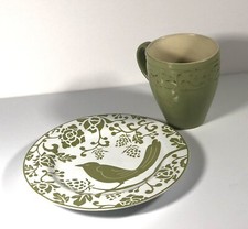 Pier 1 Imports Floral Sage Gr. Embossed Stoneware Mug, Plate