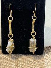 These pierced earrings feature clear druzy geode quartz stones in a rectangular baroque drop shape, adding a touch of nature and boho style to any outfit. The gold tone setting and nickel-free feature make them a versatile and safe choice for those with sensitive ears.