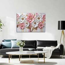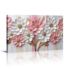 Pink and White Flower Canvas Art Floral Wall Decor Framed Modern Botanical Pi...