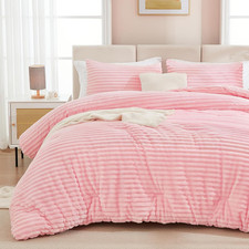 Pink Comforter Set Queen, 3 Pieces Fleece Comforter for Queen Size Bed, Soft War