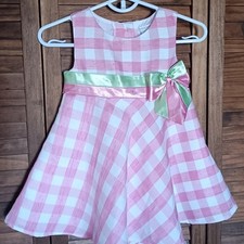 Pretty pink checked dress with gorgeous satin bow and waist tie. Buttons on the back. 12 months EUC.