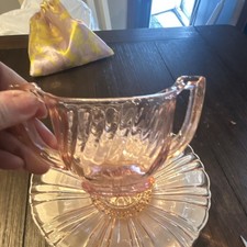 Pink Glass Creamer and Plate Set, Glossy Round, 2-Piece Decorative Collection
