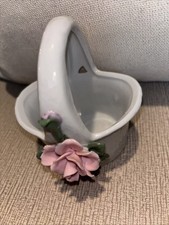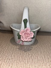 Beautiful vintage Pink Rose Vase Votive Cute Tiny Flower And Bow Cottagecore Decor Vintage 4.5x4" in pre-owned good condition with no chips or cracks.