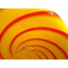 Pinkwater Studios Art Glass Decanter w/ Stopper Yellow Red Spiral Signed 1996