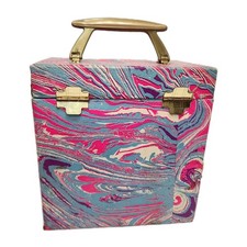 **There are cosmetic signs of wear on this case which does not affect the functionality of it. Please refer to the photos for clarification** This item is a vintage Platter Pak-style record case designed to hold 7-inch vinyl records. Design: Features a psychedelic or marbled pink, purple, and white pattern. Structure: Constructed as a box with a handle and latch for carrying. Usage: Used to store and transport 45 RPM records.