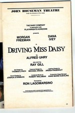 A Playbill for Driving miss Daisy from a performance in 1987 at the John Houseman Theatre in New York City. In fine condition. Starring Morgan Freeman and Dana Ivey.