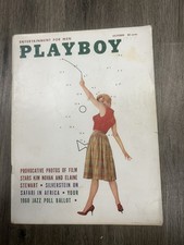 The product is a vintage issue of Playboy Magazine from October 1959. This collectible item does not include the centerfold, making it a rare find for fans and collectors of vintage magazines. The magazine features articles, interviews, and photos from that specific month, providing a glimpse into the popular culture and entertainment of the time. It is a valuable piece for those interested in classic magazine content and nostalgia from the mid-20th century.