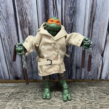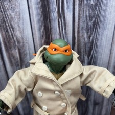 The Playmates TMNT Teenage Mutant Ninja Turtle Elite Series Mikey in Disguise Figure is a colorful action figure depicting the character Michelangelo, also known as Mikey. This toy features nunchucks and a coat, typical accessories for a ninja character. Manufactured in 2016 by Playmates Toys, this figure is part of the Teenage Mutant Ninja Turtles franchise, specifically based on the Nickelodeon Animation Studio's animated series. Perfect for fans of the animated show or movie, this action figure brings the beloved character to life for imaginative play. Does not come with the hat! Great condition!