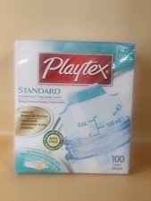The Playtex Nurser System Soft Bottle Liners are 100 original, sealed in a box, and considered old stock. These disposable liners are pre-sterilized and come in a clear color. With a capacity of 4 oz/118 ml, they are designed for standard baby bottles. Perfect for on-the-go use or for those who prefer a disposable option for bottle feeding their baby.