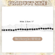 Pleated Lace Ruffle Trim Ribbon, 10 Yards 1" Wide, White Veil with Black Bead