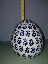Polish Blue And White Pottery Large Ceramic Hand Painted Easter Egg Decor 7" additional preview