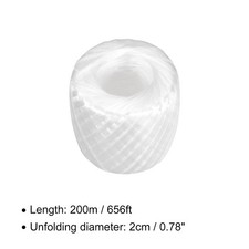 About the product:The Plastic Rope Twine is good for daily binding, industrial and agricultural sewing, decoration of handicrafts, greenhouse fruit Lanyard,Book arrangement,etcGood Choice for you:Made of Polyester Nylon, Light weight, easy to carry, daily use, tough and not easy to breakSpecification:2-[Size]: Material: Polyester Nylon Plastic;Unfolding diameter: 2cm/0.78inch,;Length: 200m/656ft;Color:White; Pack content: 2 roll of Plastic RopeEasy to install:Cut according to the length you need,Good for binding and decoration DIYTips:Please confirm the correct size before ordering.