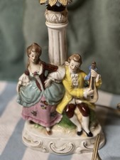 Porcelain Figurine Table Lamps Pair German Hand Painted Rococo Revival Antique