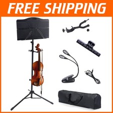 Included Violin Hanger: Accommodates a variety of violin sizes from 1/8 to 4/4. Can also be attached to your microphone stand for versatile use. Transform the way you perform with this sheet music stand that blends functionality and portability.
