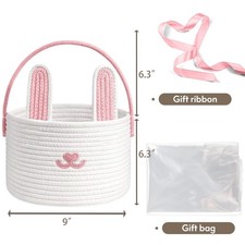 NATURAL & DURABLE MATERIAL - Made of 100% natural and non-toxic cotton rope, durable and ensures a safe and sturdy storage solution for candy, toys or Easter eggs.