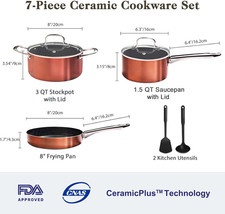Pots and Pans Set Non Stick, 7 Piece Ceramic Cookware Set, Non Toxic Kitchen Induction Cookware Sets, Pots and Pans Cooking Set with Oven Safe Handle, 100% PFOA Free, Copper. Clean up is quick & easy, simply rinse or wipe with a damp paper towel.