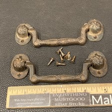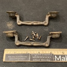 Pr 2 Victorian Cast Iron Antique 5” Handle Drop Bail Dresser Swing Drawer Pulls