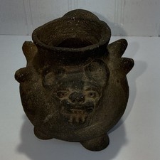 PRE COLUMBIAN Pottery Tripod Vessel Effigy with Jaguar Face