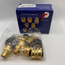 Ships Same Day!!! Order in time for the Holidays!!!A versatile pressure washer adapter set by Tool Daily. This set includes multiple adapters designed for seamless connection between your pressure washer and garden hose. Configurations include Metric M22 female to 3/8 inch plug, 3/8 inch quick disconnect to M22 14mm male, 1/2 inch plug to 3/4 inch male, and 3/4 inch female to 1/2 inch quick connect. These adapters are ideal for car washing, patio cleaning, and general outdoor maintenance. Keywords: pressure washer, adapter, quick connect, garden hose, fittings, M22, cleaning, outdoor, car wash, patio, tool, accessory