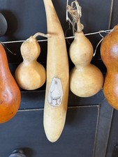 As described in title. Includes additional twine so you can customize the length. Gourds span approx. 30” as seen in pictures. Please click on pictures for full view. Banana gourds have cute duck print added. Other gourds are natural and stained. Super cute on a peg rack or cupboard. Gourds are grown on family farm in central PA. Naturally dried in the field and then harvested, cleaned and handcrafted by me. I have many gourds. Please message me if you are looking for something specific. I am happy to do special orders. Thanks for looking!