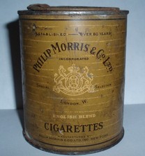 PRIMITIVE ANTIQUE CIGARETTE LITHOGRAPHED TIN HUMIDOR CAN.