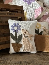 This charming, handcrafted small pillow (or "bowl filler") is a perfect slice of farmhouse spring. Handmade Details: The bunny is finished with classic primitive stitching, and the pillow itself features a beautiful, textured quilted pattern across the front.