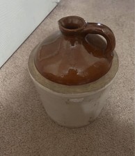 Primitive Medium Stoneware Jug Brown Beige Ceramic Pottery with Handle additional preview