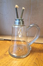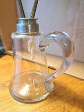 Beautiful old whale oil lamp..dates back to circa 1825...only one small nick in the bottom of the handle..hardly noticable..has a pontil mark on bottom so it indicates Hand made. Rare early lighting piece here..about 6.75" tall..